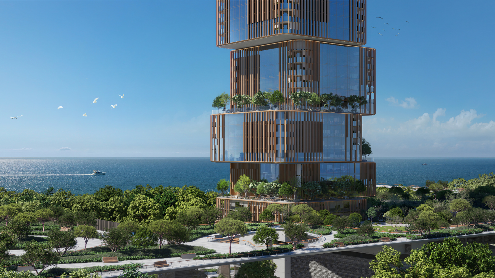 • Grand double-height lobby with premium finishes • High-speed elevators and advanced security systems • Dedicated tenant and visitor parking • 24/7 security with smart access control • Retail and café spaces on the ground floor • Waterfront promenades and leisure zones • Business-ready Grade A infrastructure