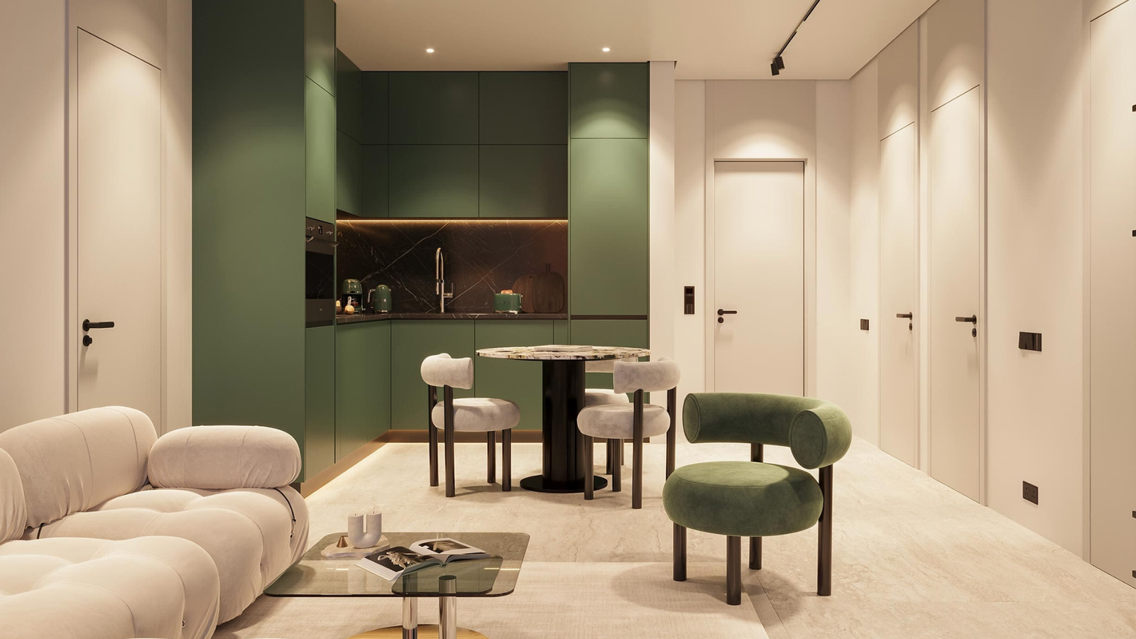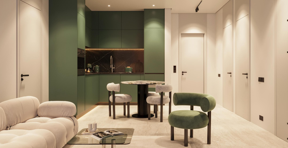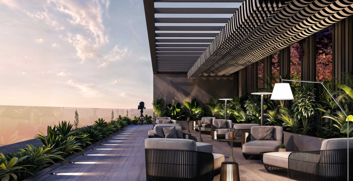 • 1, 2, and 3-bedroom branded apartments • Italian-style kitchens and travertine-effect flooring • Custom designer furnishings • Iconic double-height lobby with indoor tree and art installations • Integrated retail and office spaces • Rooftop and wellness zones • Secure parking and 24/7 security • Close access to parks, schools, supermarkets, and leisure spaces • Family-friendly, tranquil environment with city connectivity