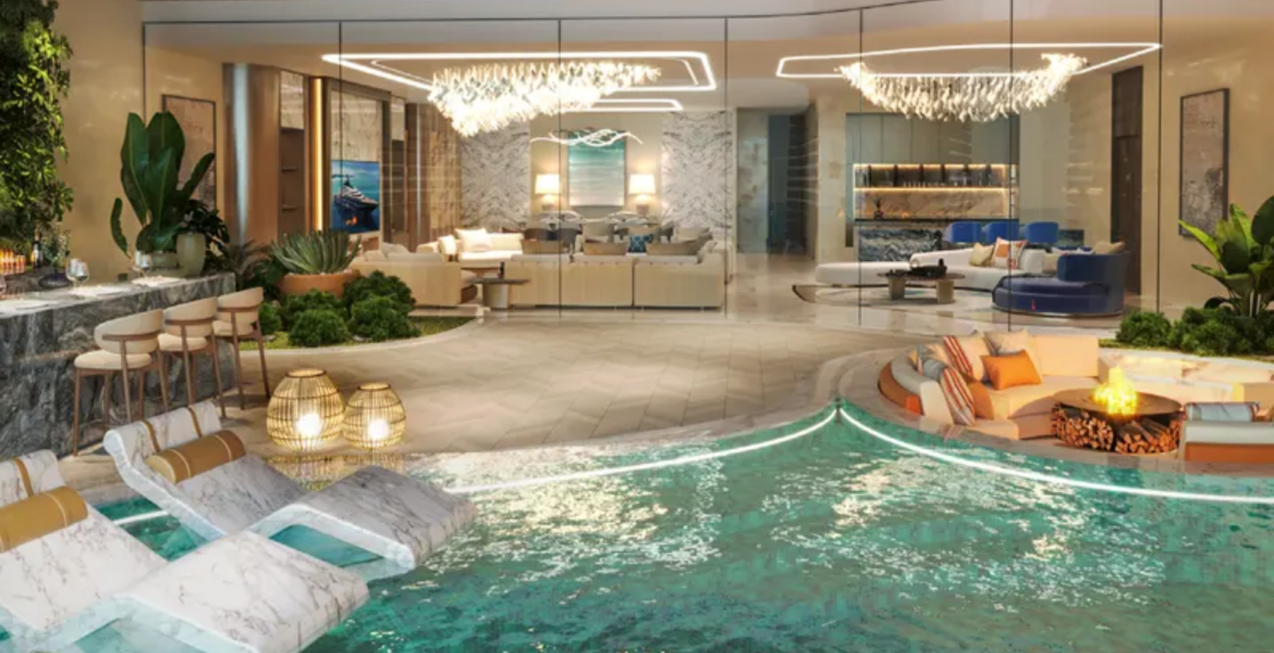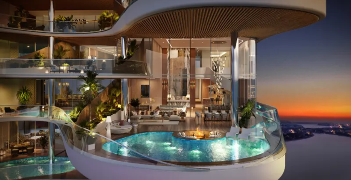 The architecture is inspired by the surrounding ocean, with flowing curves, landscaped green pockets, and integrated water features that lend the development a distinctive wave-like character. Select residences come with private terraces and swimming pools, offering dedicated areas for leisure and entertainment while maximizing waterfront views.